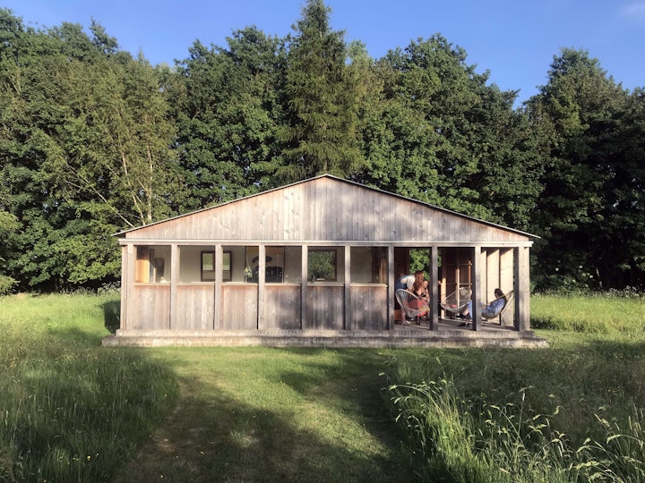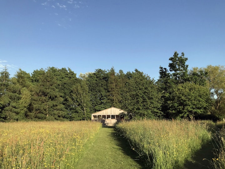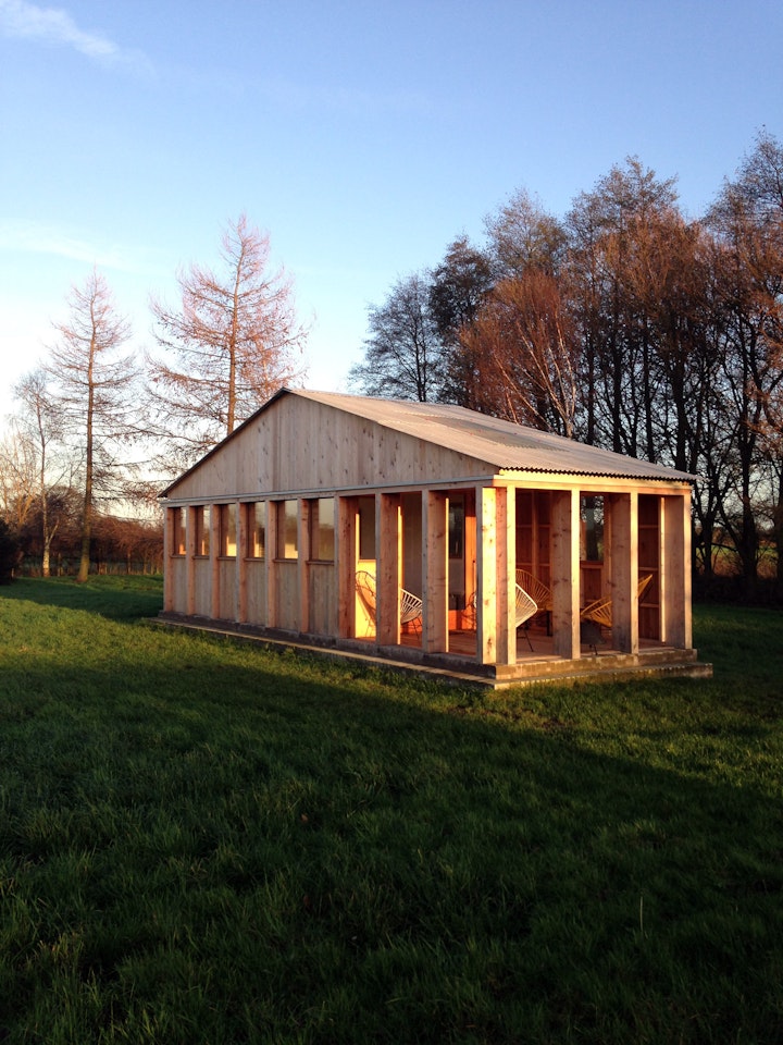 Field House is a small timber-framed summer house marrying the agricultural and temporal vernacular in a field in North Yorkshire. The building’s conception began with the discovery of a half-buried brick plinth within a wildflower meadow.