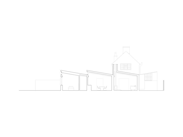 A key challenge was how to house the required spaces within a form that related to the house while not competing with it. This has been done by stepping the form of the extension in a series of mono-pitched forms - taking their width from the existing house's depth.